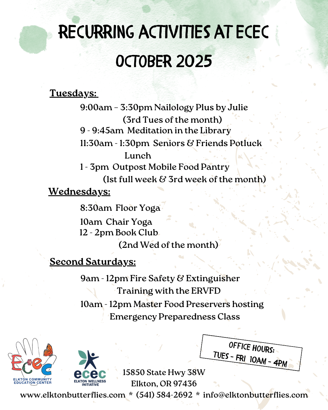 We also have several community groups that meet regularly at ECEC that are open to all! They include a Seniors & Friends Lunch; Elkton Quilters & Fiber Friends; and a Book Club. Get more information about our community groups here.